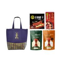- 組合內容:巨無霸夯香腸(300g)+黑豬燒肉風味條子肉乾(110g)+香腸蘿蔔糕(600g)+泰式檸檬條子肉乾(125g)+黑橋牌保冷購物袋(古典深藍款)