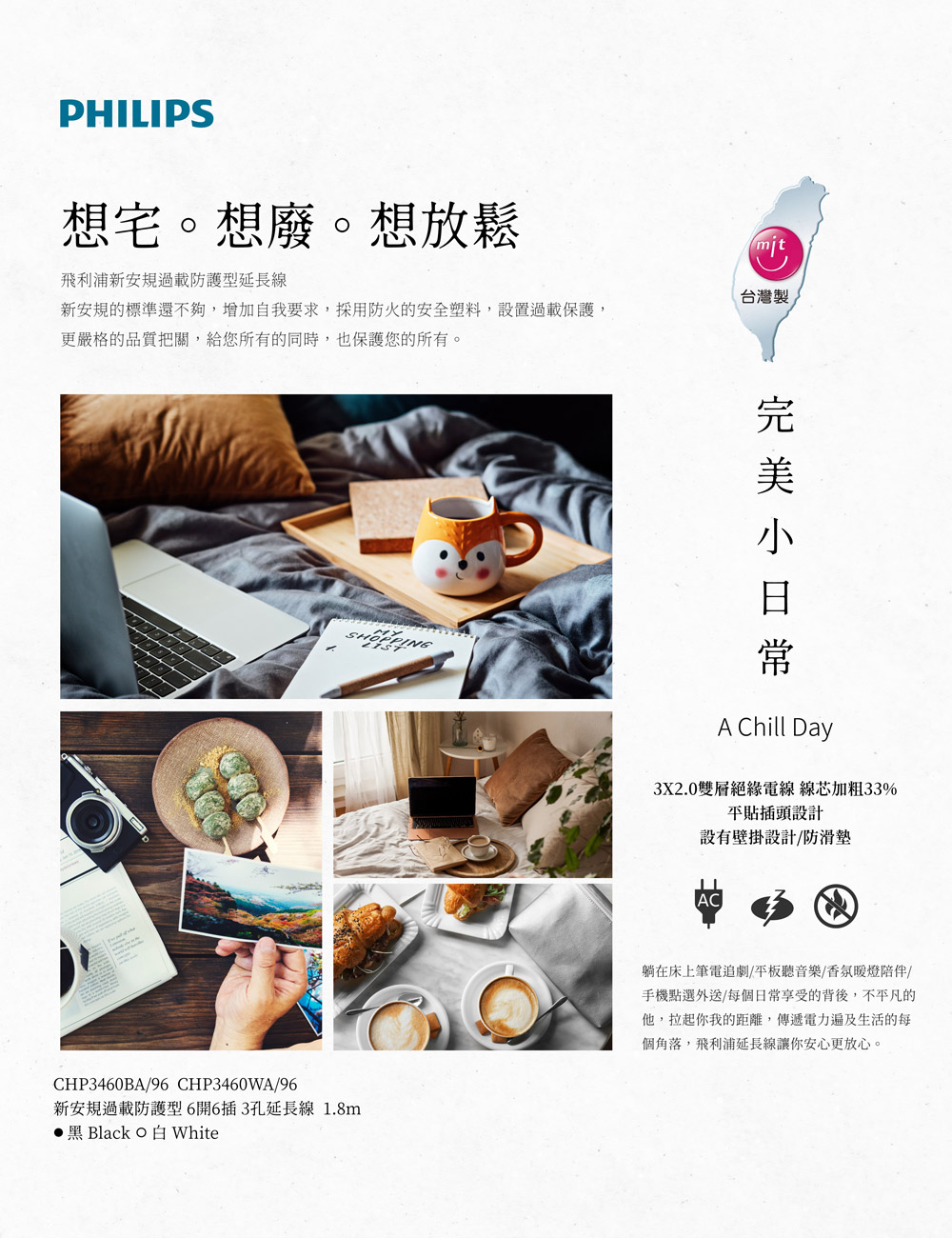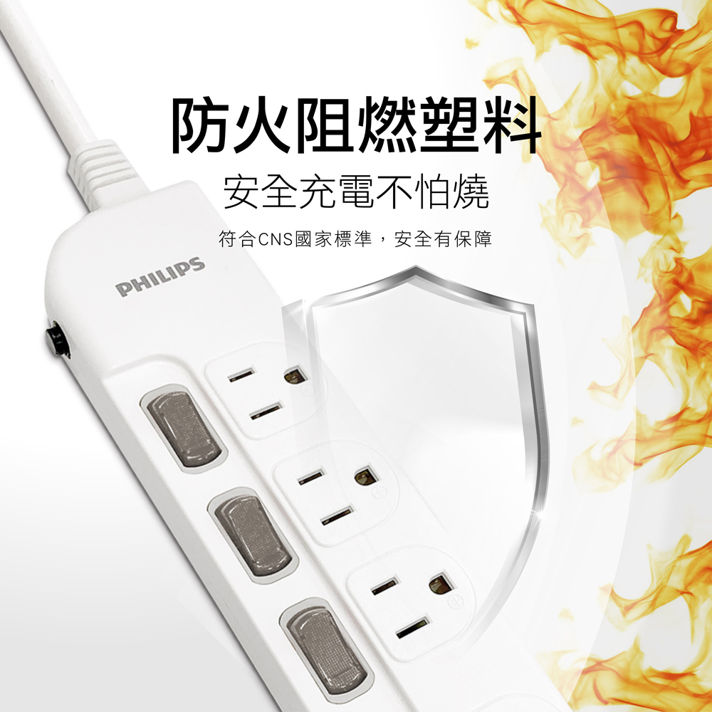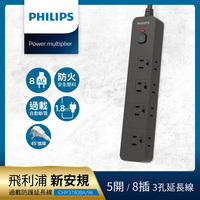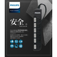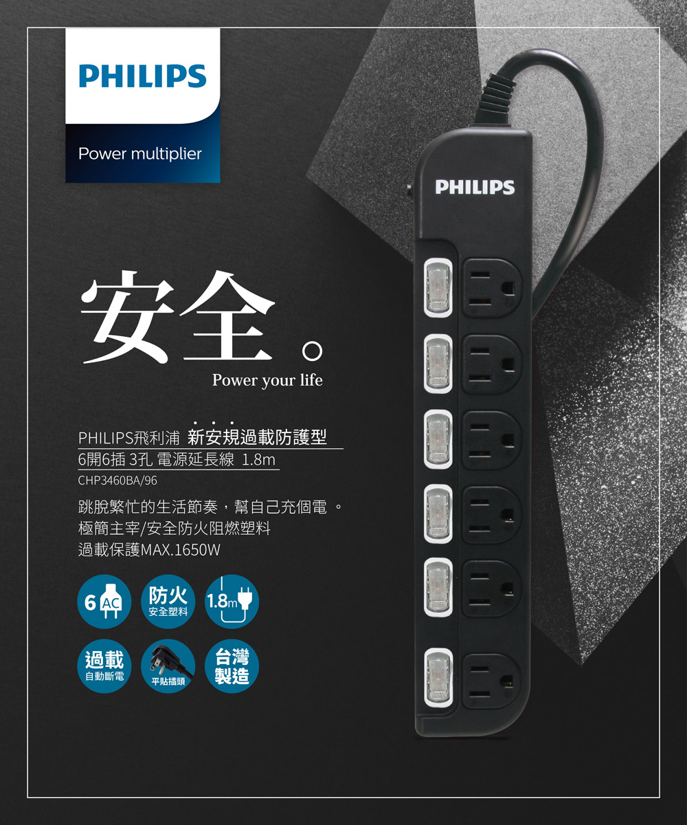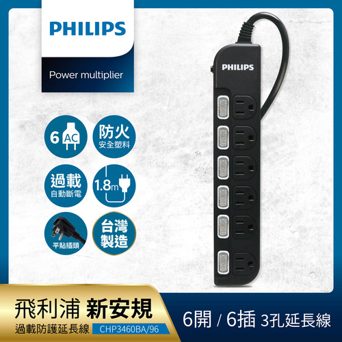 【Philips 飛利浦】延長線六開六插1.8M(黑)CHP3460BA