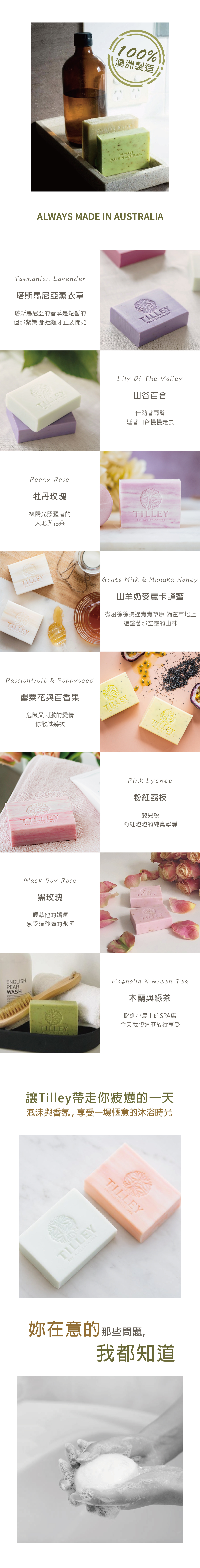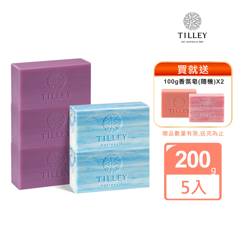 【澳洲Tilley】植粹香氛皂220g 5入組-廣藿與麝香*3+芙蓉花*2(加碼贈100g隨機口味2入)