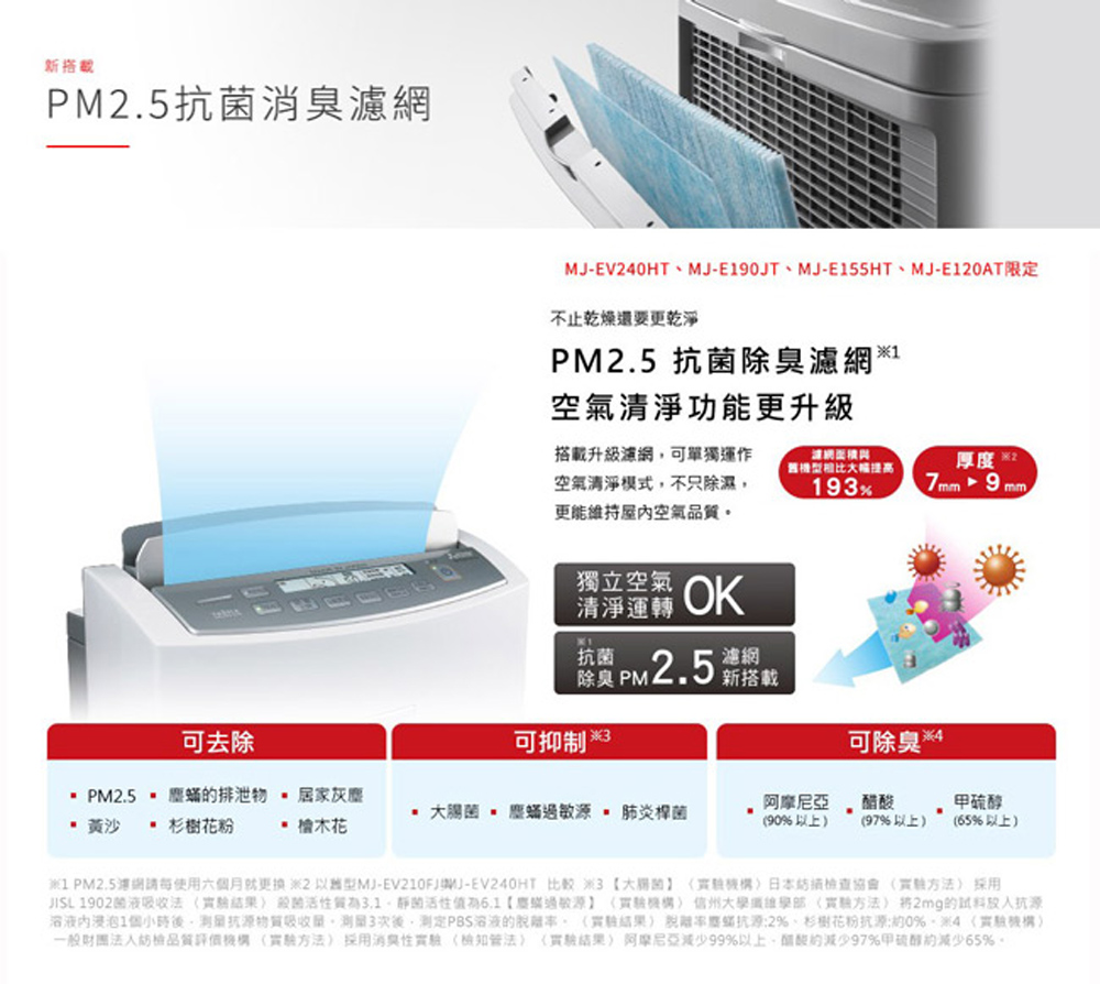 - 除溼效能:1級,空氣清淨效能:5級