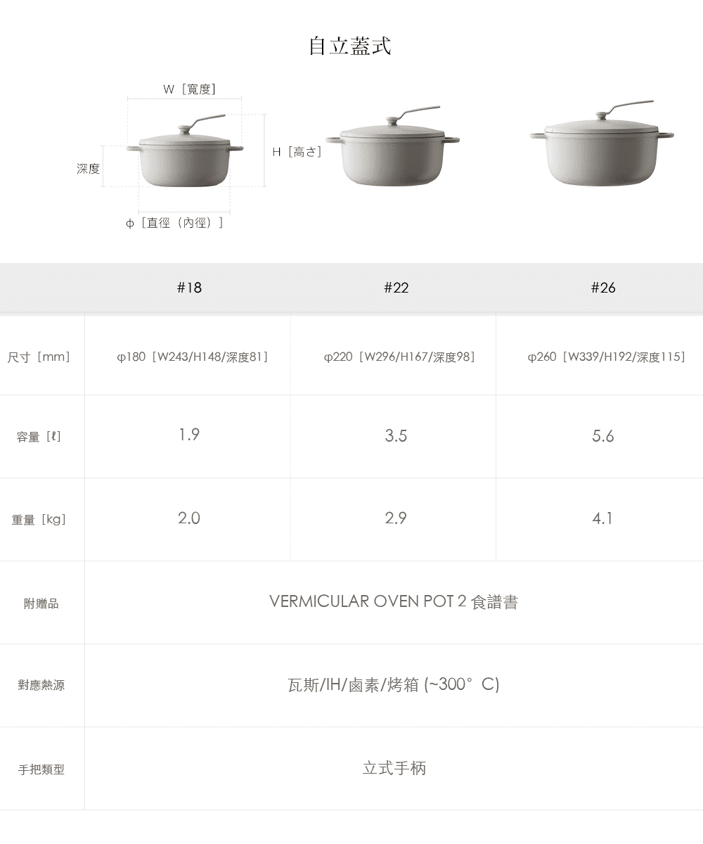 | 型號 | Vermicular日本原裝琺瑯鑄鐵鍋OP2 22cm_3.5L(雲彩粉)_806A03 |