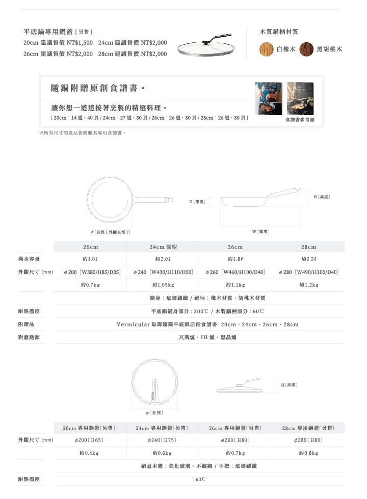 | 型號 | Vermicular日本製琺瑯鑄鐵平底深鍋26CM含蓋(白橡木)_806A06 |