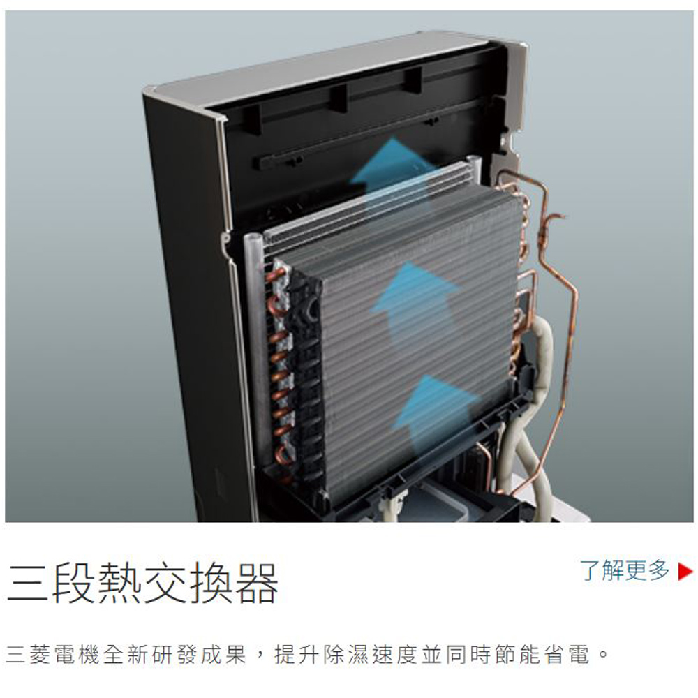 - 三段熱交換器、兼具除濕力及省電力
