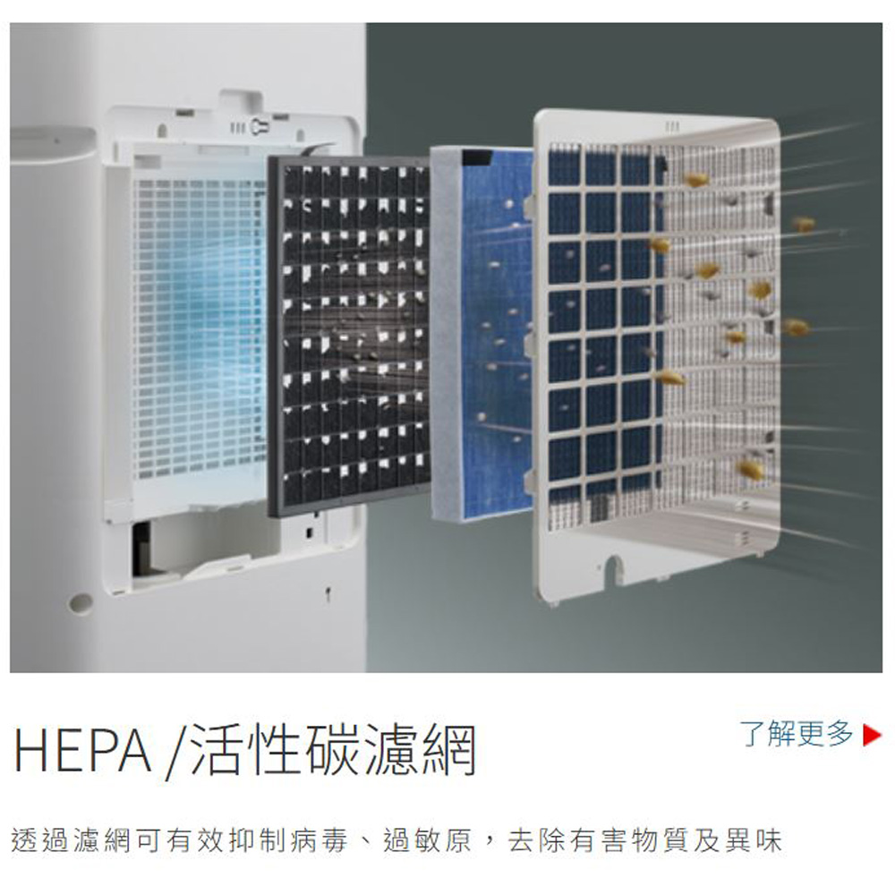 - 全新搭載HEPA+活性碳濾網