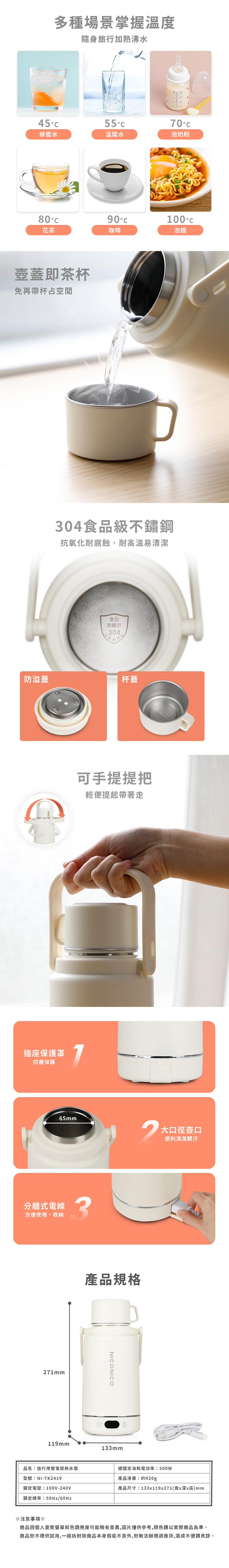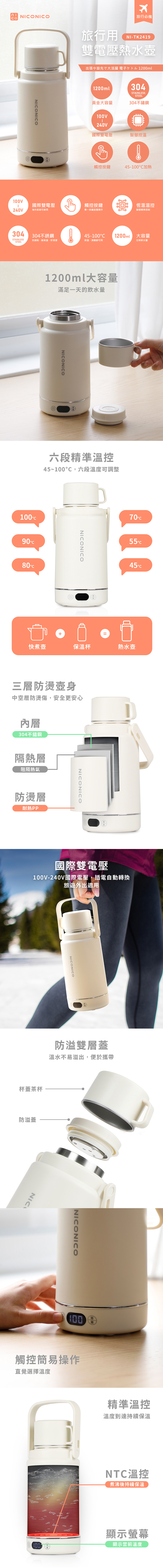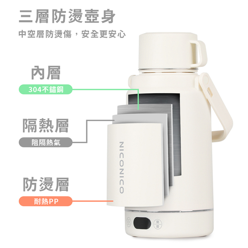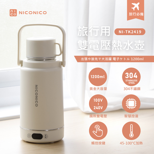 NICONICO 1.2L旅行用雙電壓熱水壺 NI-TK2419(白色)