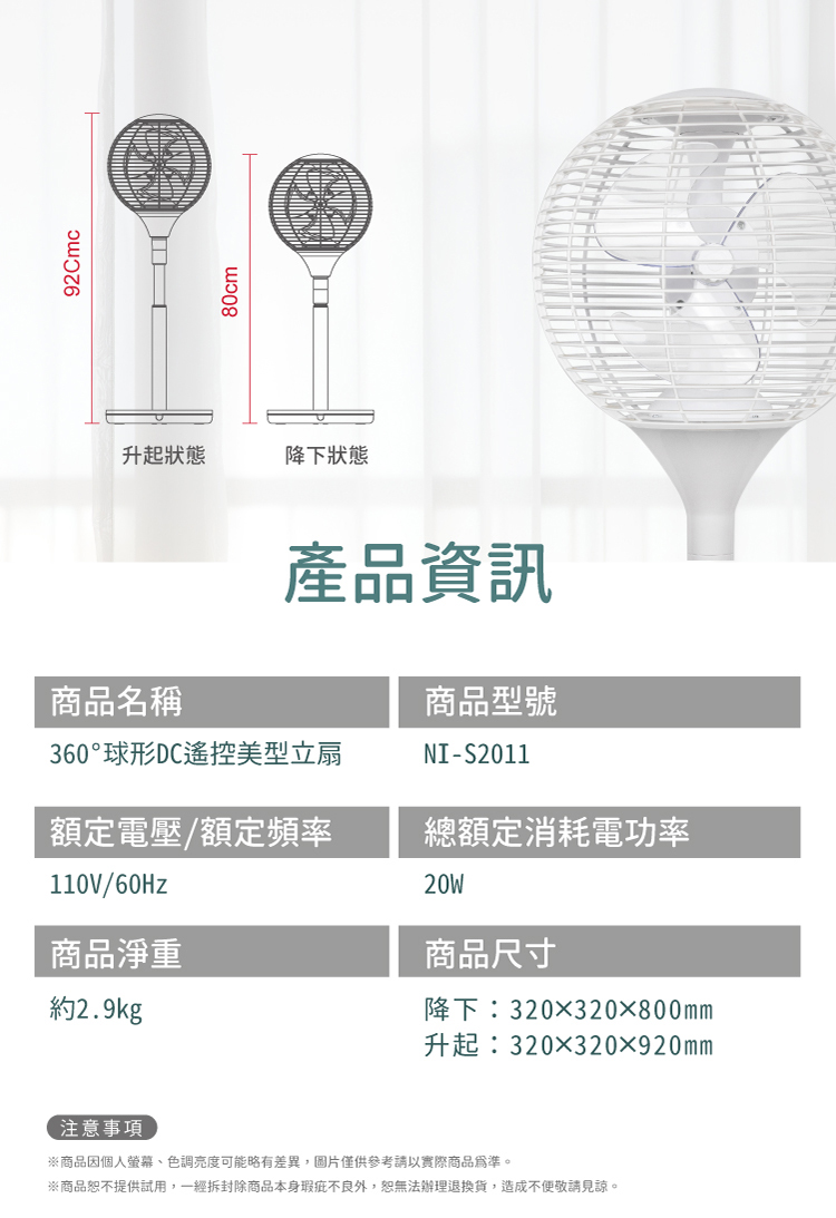 NICONICO 360度球形DC遙控美型立扇NI-S2011(薄荷綠)