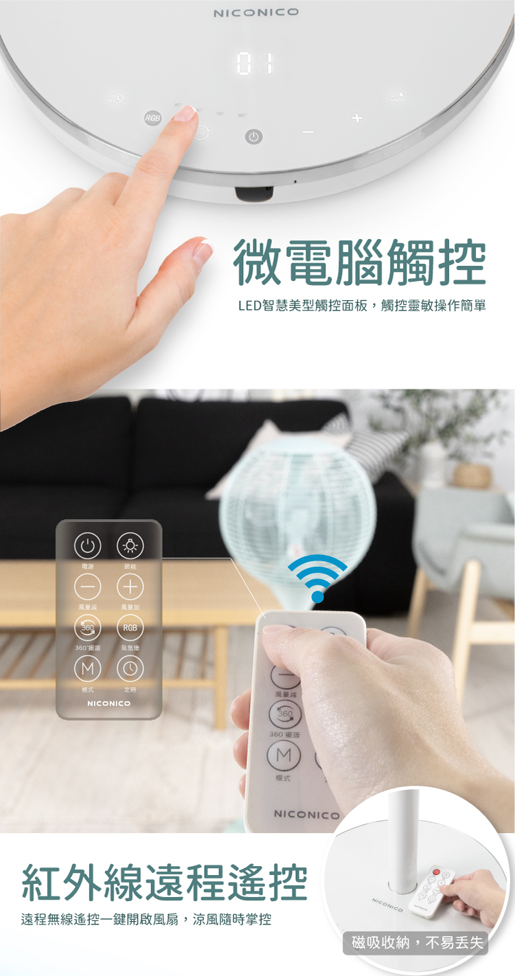 - LED微電腦觸控面板,可無線遙控