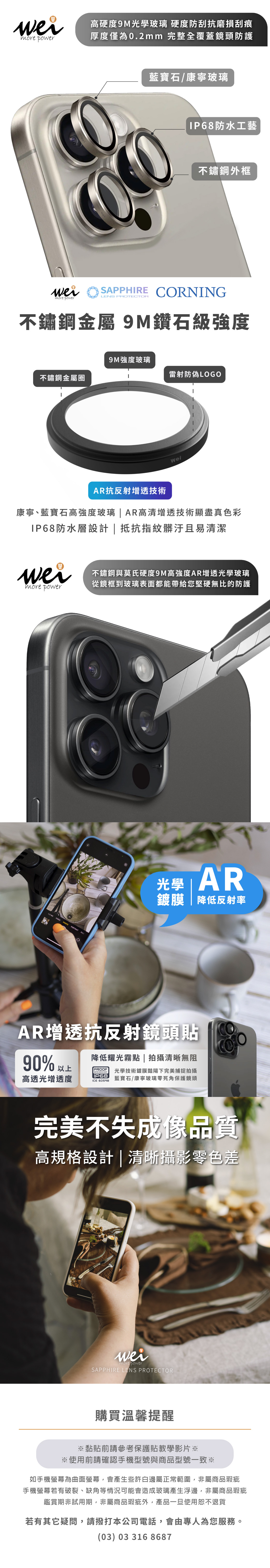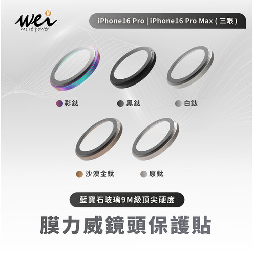 IPhone16Pro/16 ProMax膜力威藍寶石鏡頭玻璃貼(三鏡頭)+贈鏡頭底座貼(原鈦)