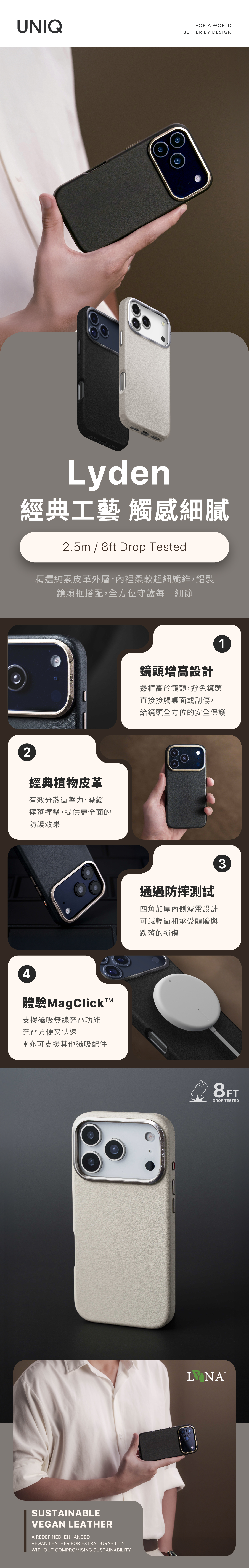 UNIQ iPhone 17 Pro Max 6.9吋 Lyden Magclick 耐刮皮革磁吸保護殼-黑
