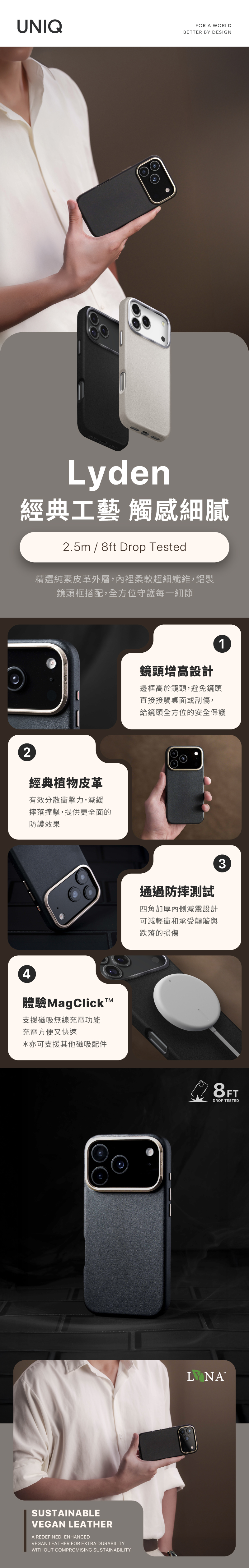 UNIQ iPhone 17 Pro Max 6.9吋 Lyden Magclick 耐刮皮革磁吸保護殼-灰