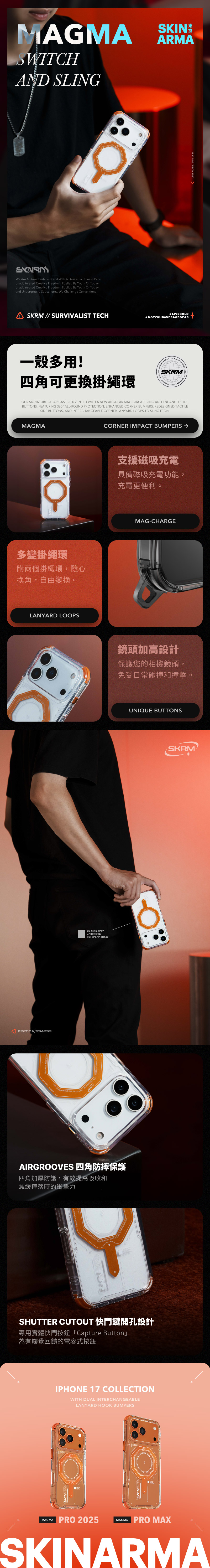 SKINARMA iPhone 17 Pro Max 6.9吋Magma質感金屬磁吸防摔手機款(附掛環扣)-橘