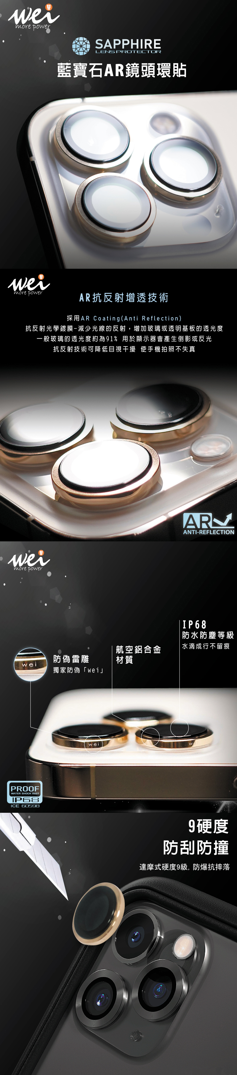 膜力威AR鏡頭保護貼為鈦合金高硬度9M藍寶石光學玻璃,不僅耐刮更高清透亮。 世界級防護規格,從鏡框到玻璃表面都能帶給您堅硬無比的防護。