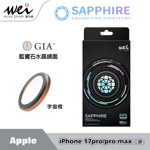 IPhone17 Pro/Pro Max膜力威藍寶石鏡頭玻璃貼(三鏡頭)(宇宙橙)