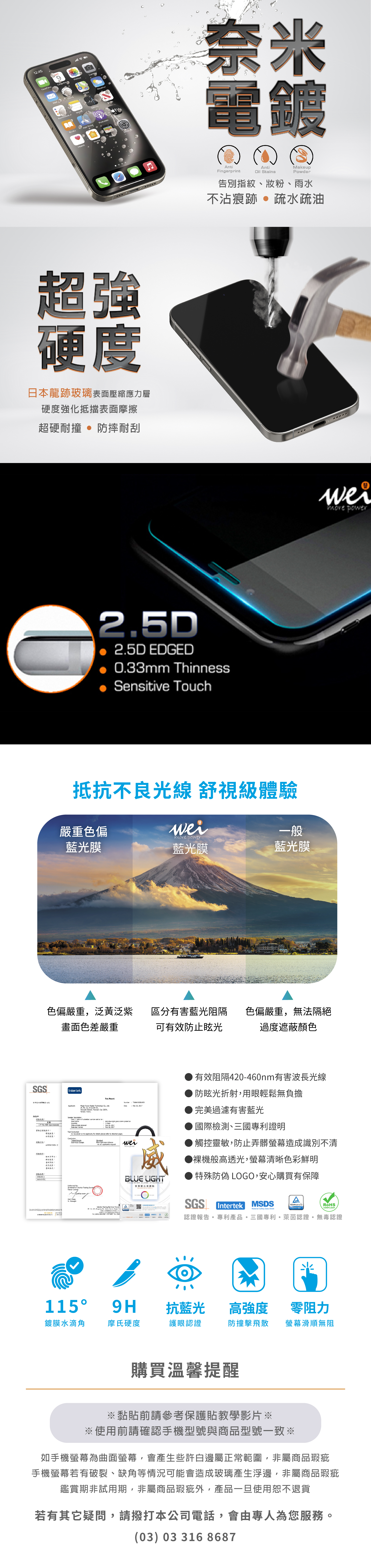 藍光龍跡玻璃屬矽酸鋁化學強化玻璃 SGS、Intertek檢驗報告,有效能阻隔藍光 真空奈米電鍍層,疏水疏油效果極佳,表面滑順、防指紋 獨家特殊藍光吸收層 ,不反光、不變色,還你原色純透明 採用AGC頂級龍跡玻璃材質,硬度為一般玻璃6倍 世界最高等級表面壓縮應力層 – 抗壓、抗衝擊、耐磨防刮、韌性大、富有光澤