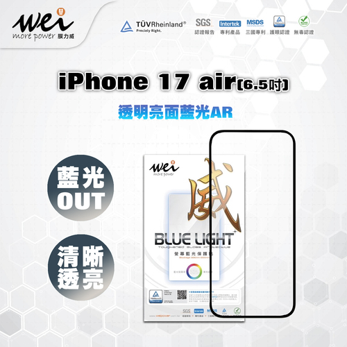 IPhone Air膜力威藍光透明玻璃貼-亮面