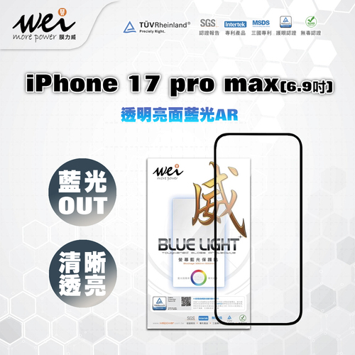 IPhone17 Pro Max膜力威藍光透明玻璃貼-亮面