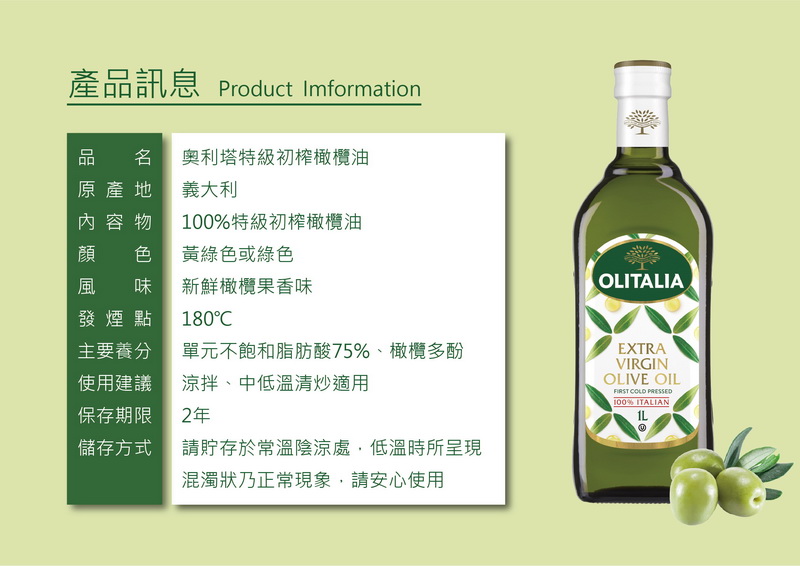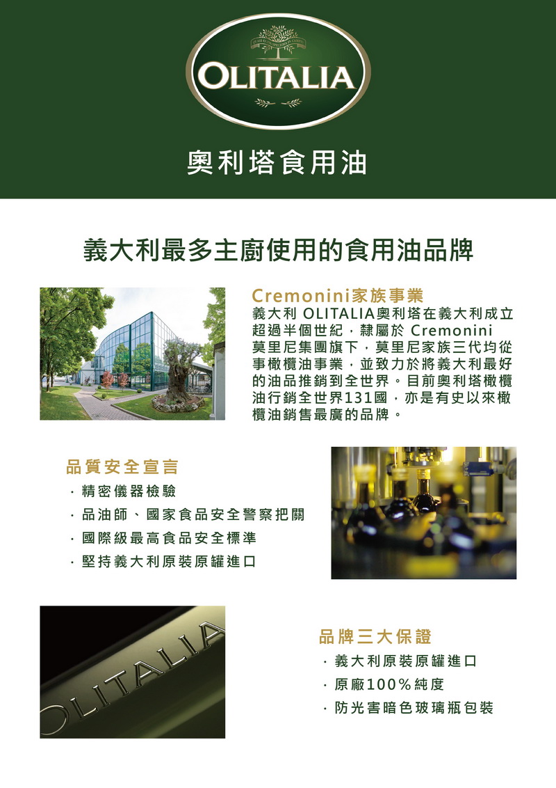 商品名稱:Olitalia 奧利塔 特級初榨橄欖油禮盒組(1000ml/瓶x2瓶)