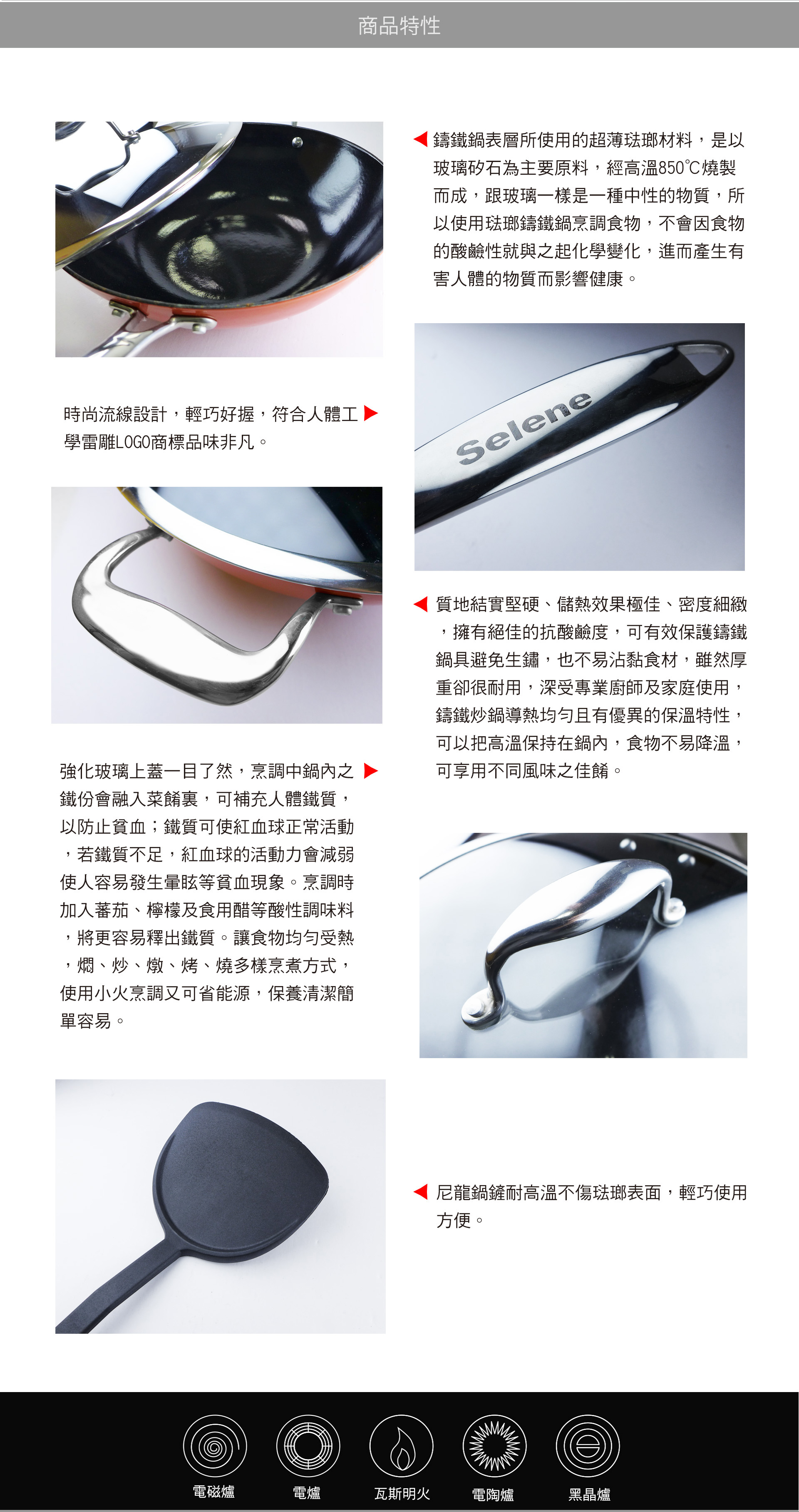 - 使用小火烹調又可省能源,保養清潔簡單容易