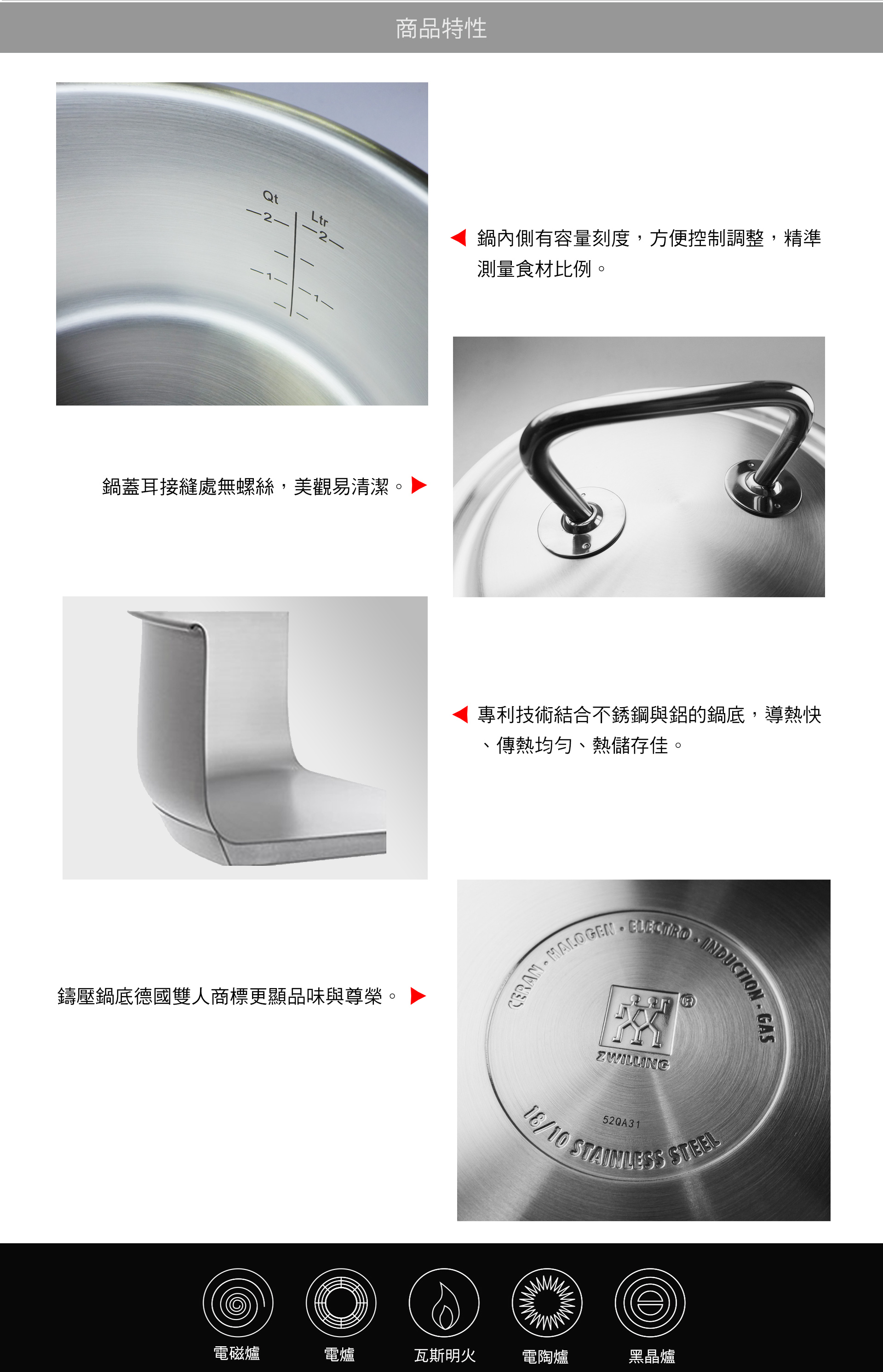 - 適用各式爐具。