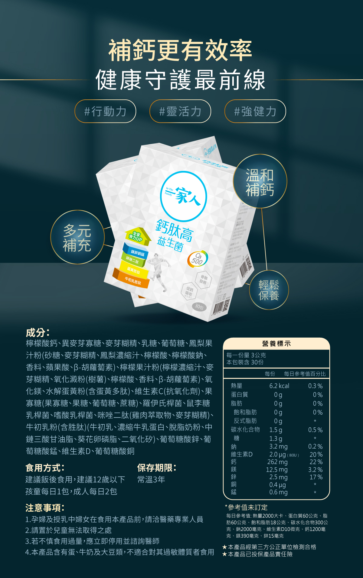 【陽明生醫】一家人鈣肽高益生菌30包(粉劑)