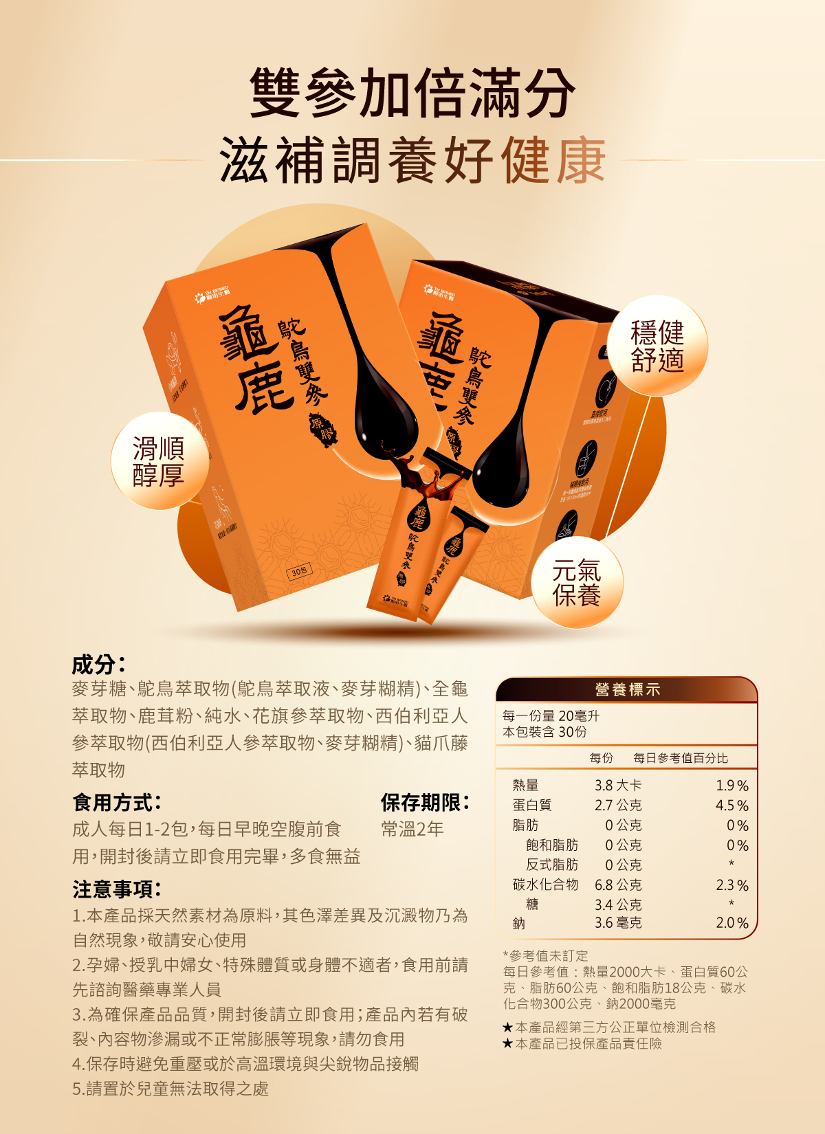 【陽明生醫】龜鹿鴕鳥雙參原膠30包