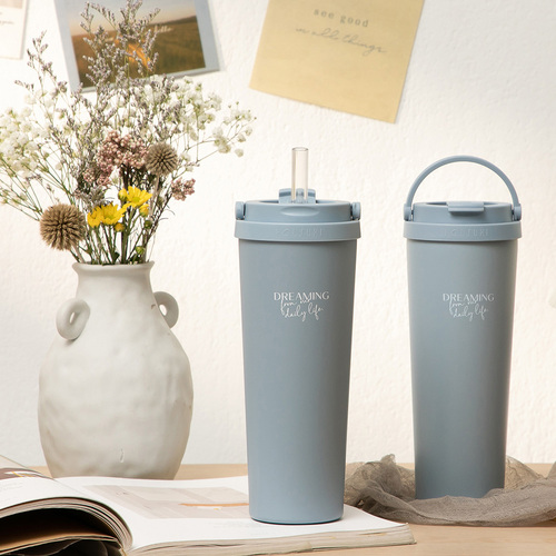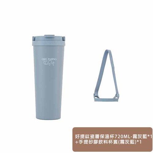 【舒希】HOUSUXI-好提鈦瓷層保溫杯720ml-霧灰藍+手提矽膠飲料杯套(霧灰藍)