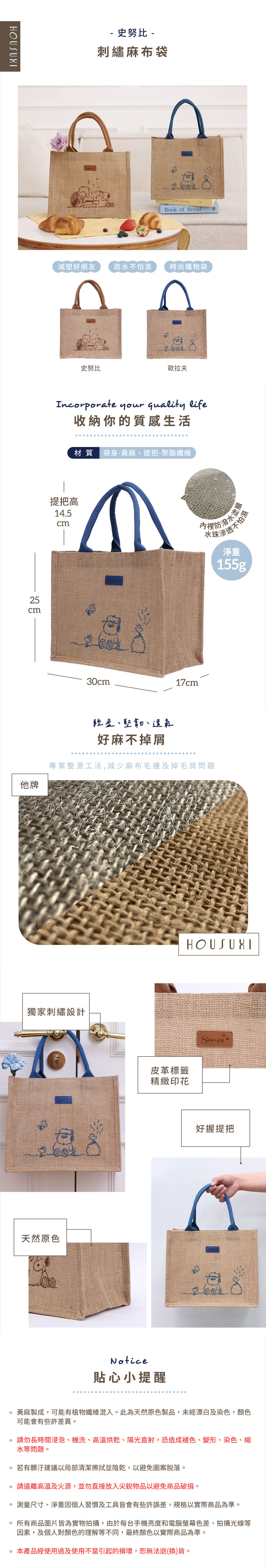 史努比歐拉夫報到!搭配高質感童趣刺繡,好麻不掉屑、提把柔軟好握,當作點心袋、外出小袋通通OK!愛自己,愛地球,選擇這款刺繡麻布袋!