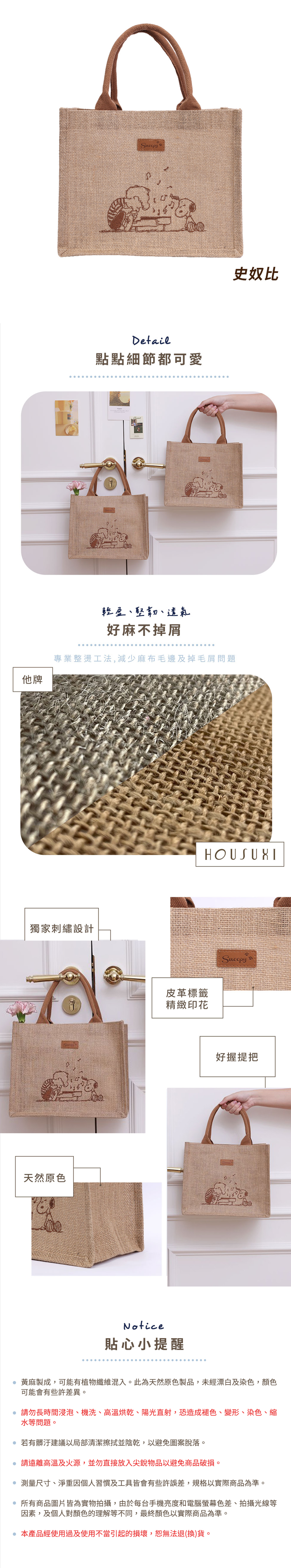 史努比報到!搭配高質感童趣刺繡,好麻不掉屑、提把柔軟好握,當作點心袋、外出小袋通通OK!愛自己,愛地球,選擇這款刺繡麻布袋!
