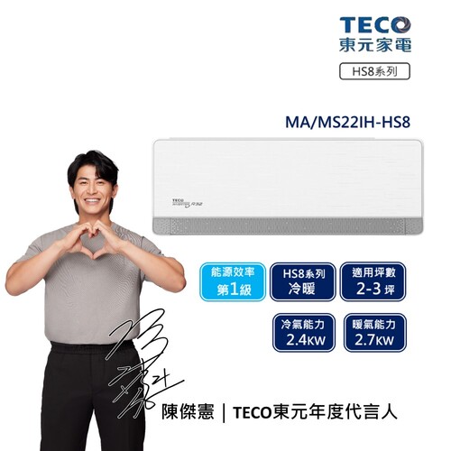 東元4-5坪R32一級頂級變頻冷暖分離式空調MA22IH-HS8/MS22IH-HS8