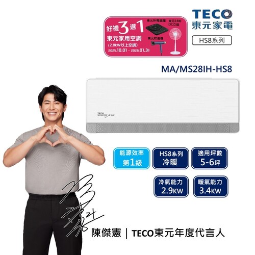東元5-6坪R32一級頂級變頻冷暖分離式空調MA28IH-HS8/MS28IH-HS8
