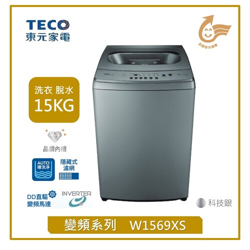 東元15KG直立式變頻洗衣機(鈦空銀)W1569XS
