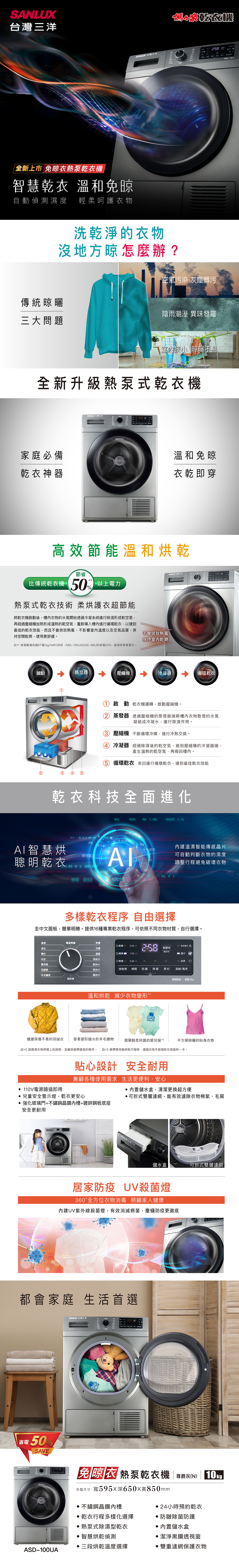 台灣三洋_10公斤熱泵式乾衣機_ASD-100UA