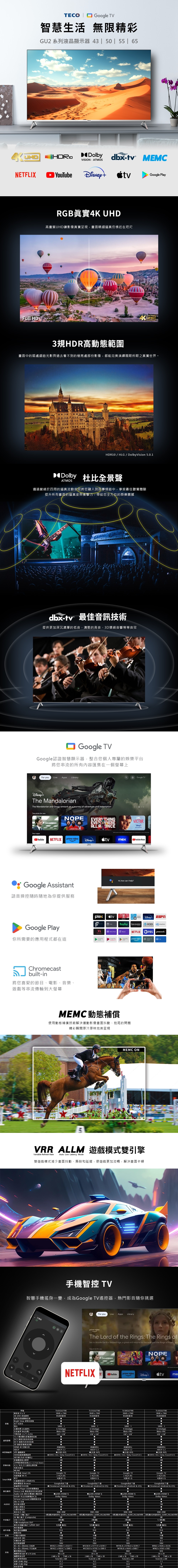 - 支援 eARC *MEMC(60Hz)&VRR & ALLM.