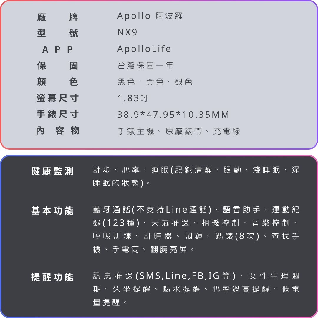 | 內容物 | 手錶、錶帶、磁吸充電線 |