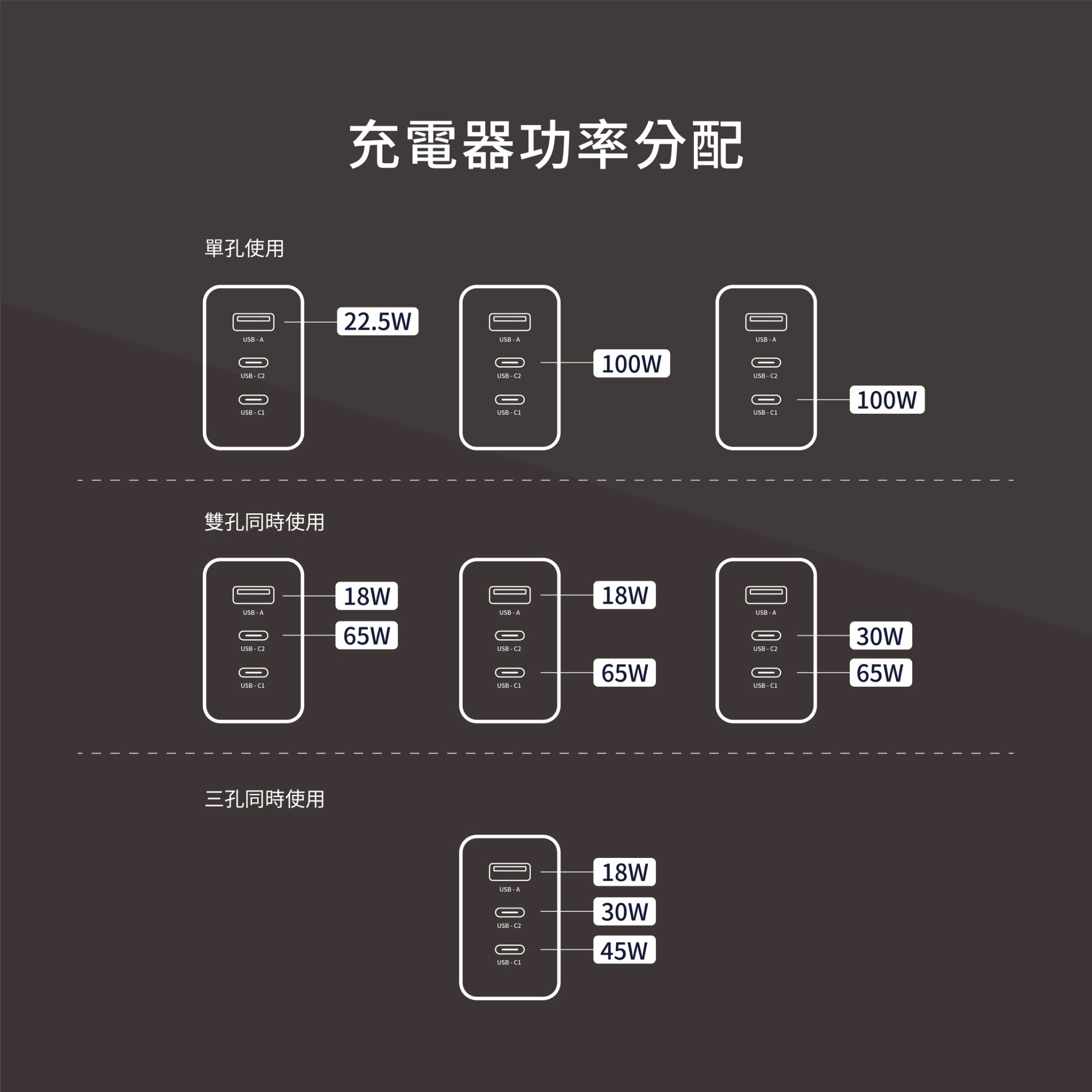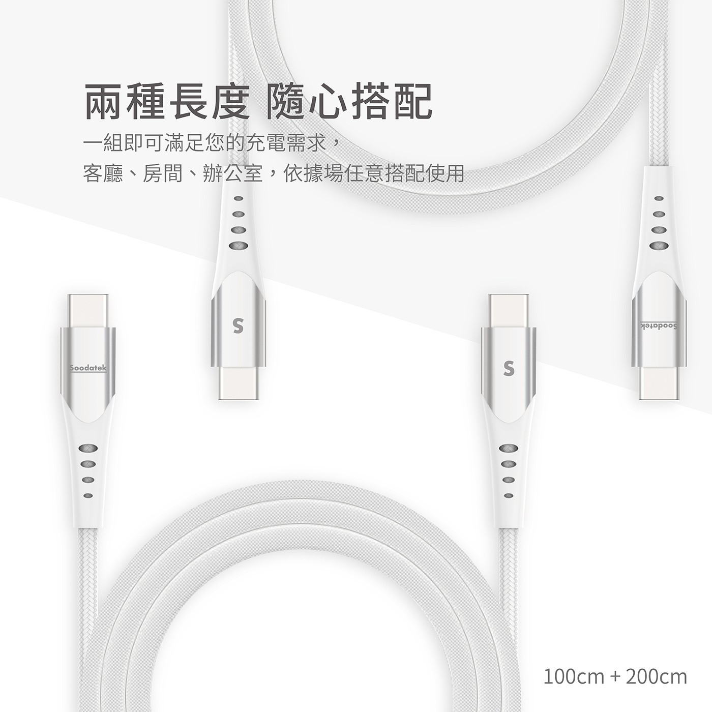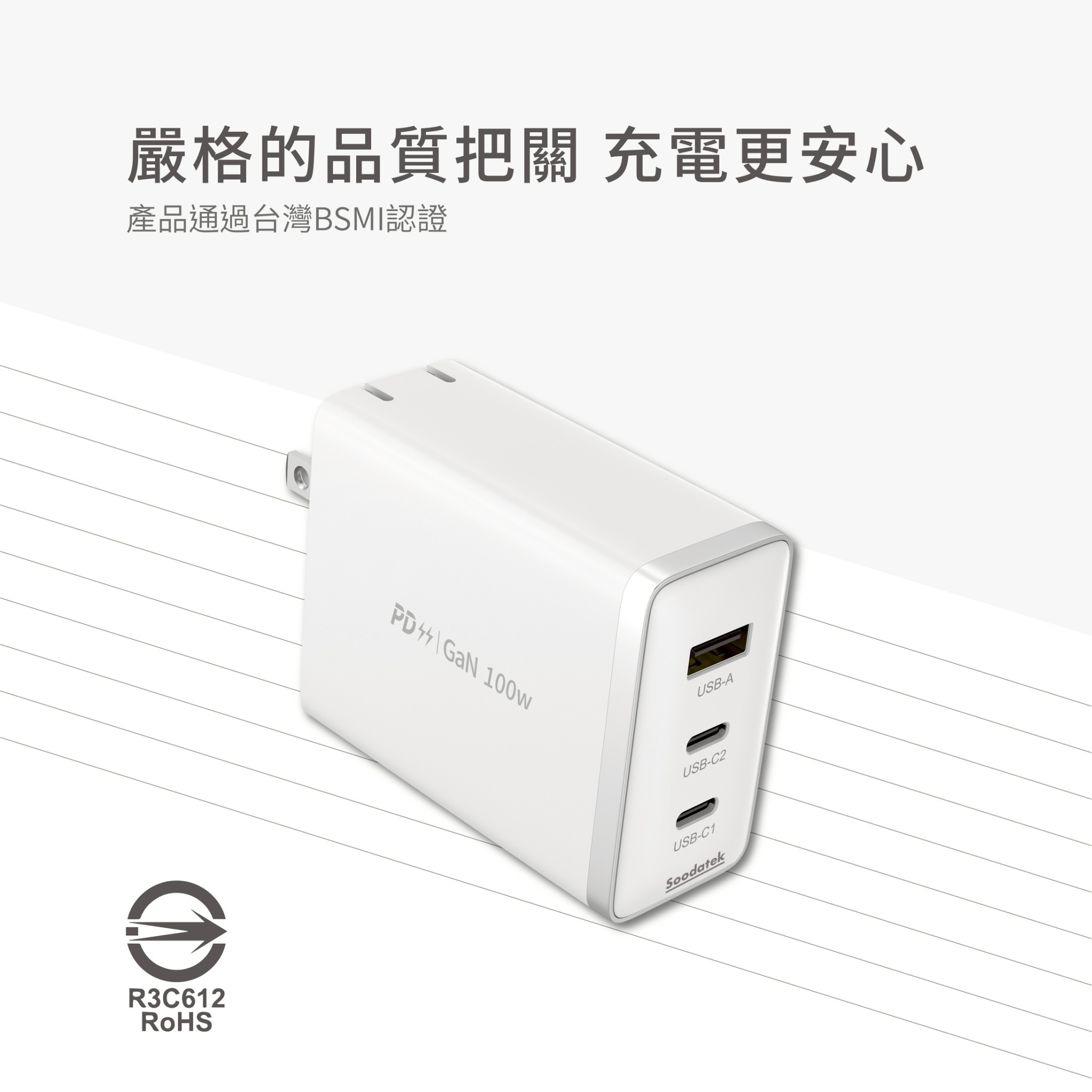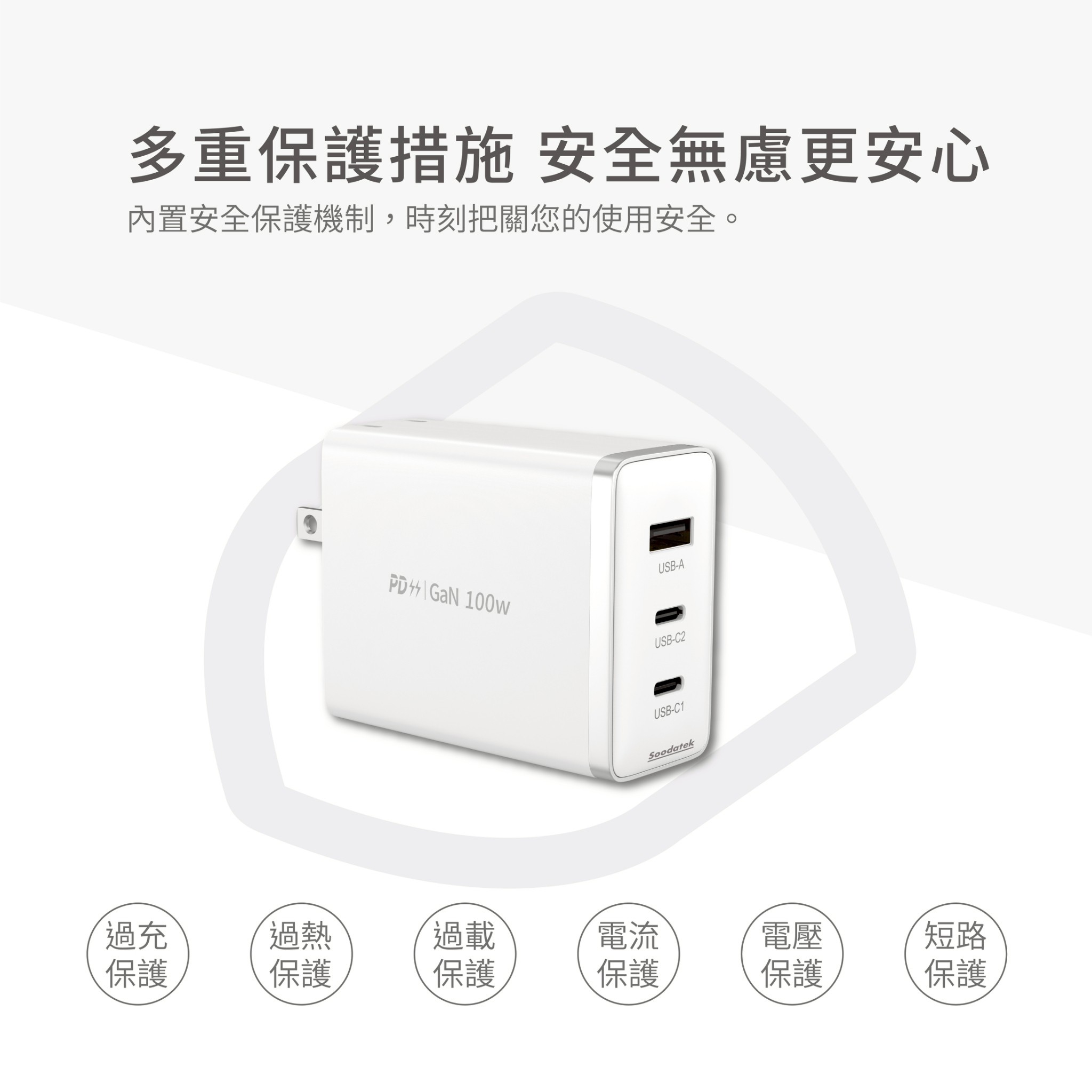 SOODATEK GaN PD 100W 三孔高速充電器 +TYPE C to TYPE C 充電傳輸線1M SGHPD100-CC100WH