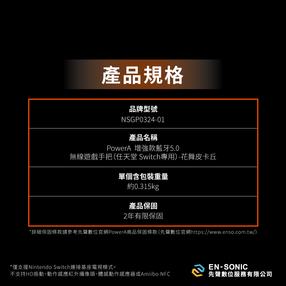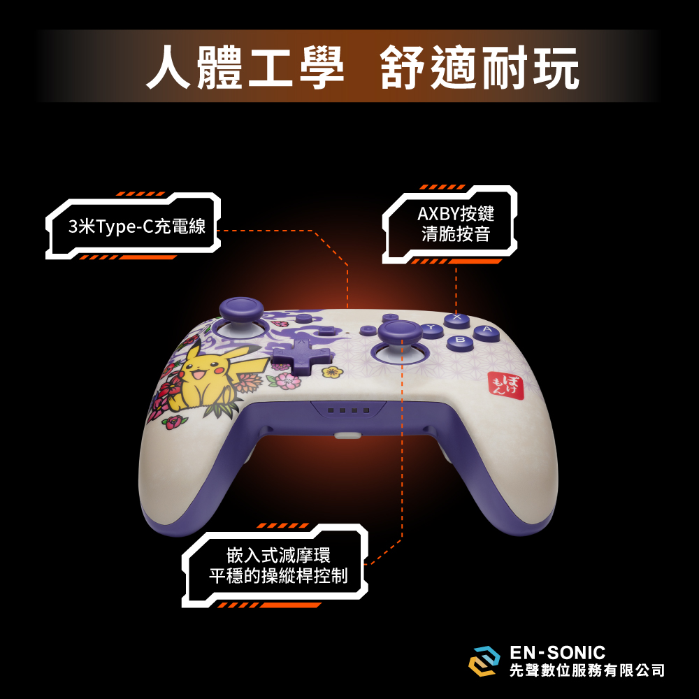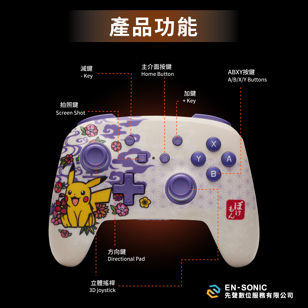PowerA【任天堂官方授權】增強款藍芽5.0無線遊戲手把限量款(NSGP0324-01)-花舞皮卡丘