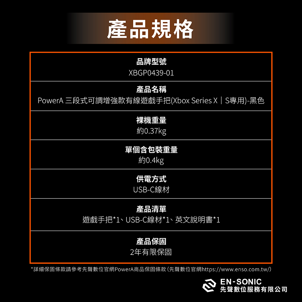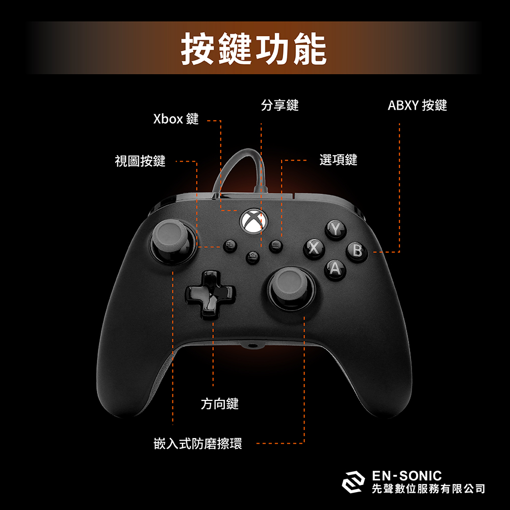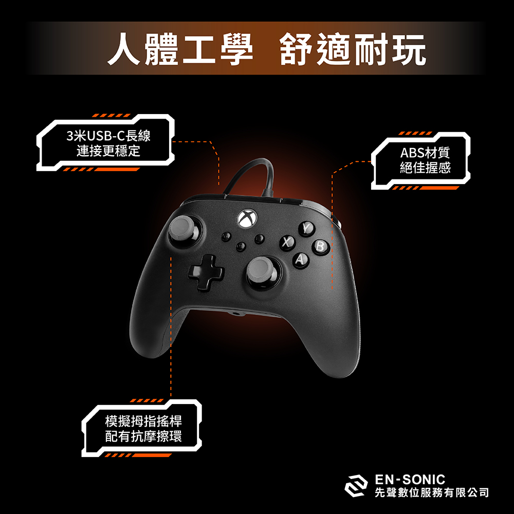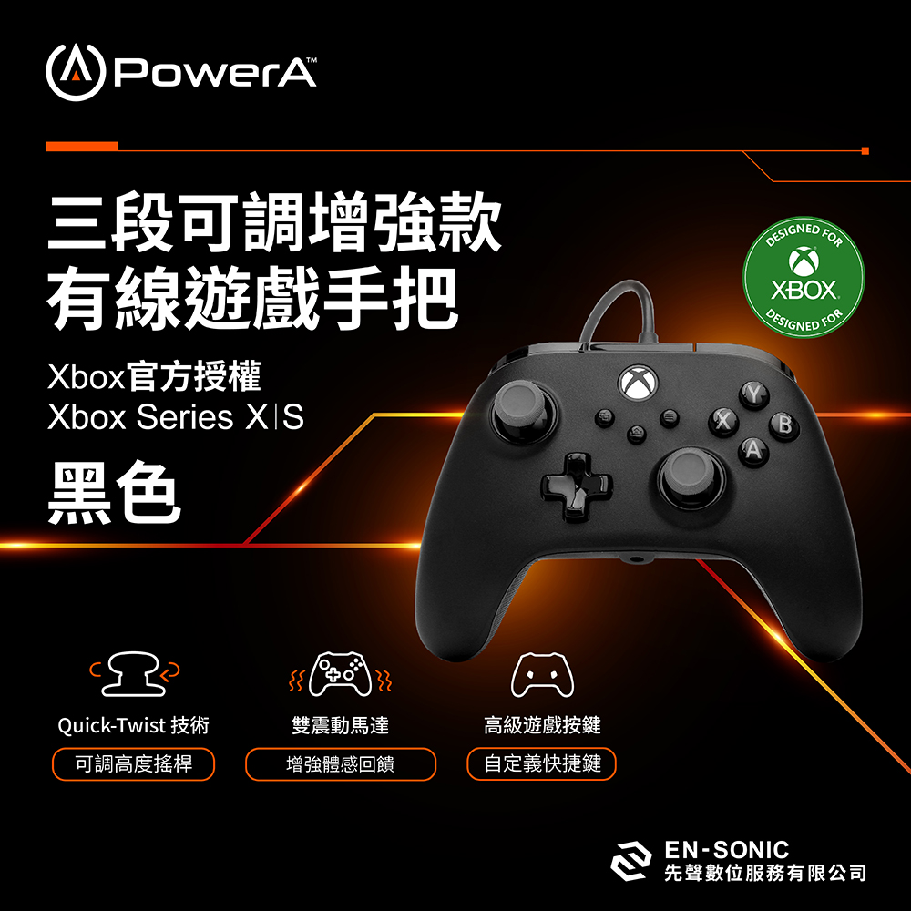 PowerA【XBOX官方授權】三段式可調增強款有線遊戲手把(XBGP0439-01)-黑色