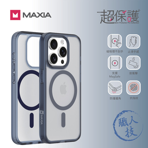 MAXIA iPhone 15 Pro 霧透無線磁吸殼 深藍