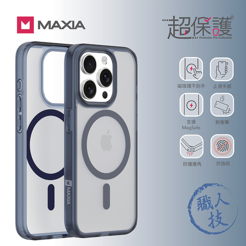 MAXIA iPhone 15 Pro Max 霧透無線磁吸殼 深藍
