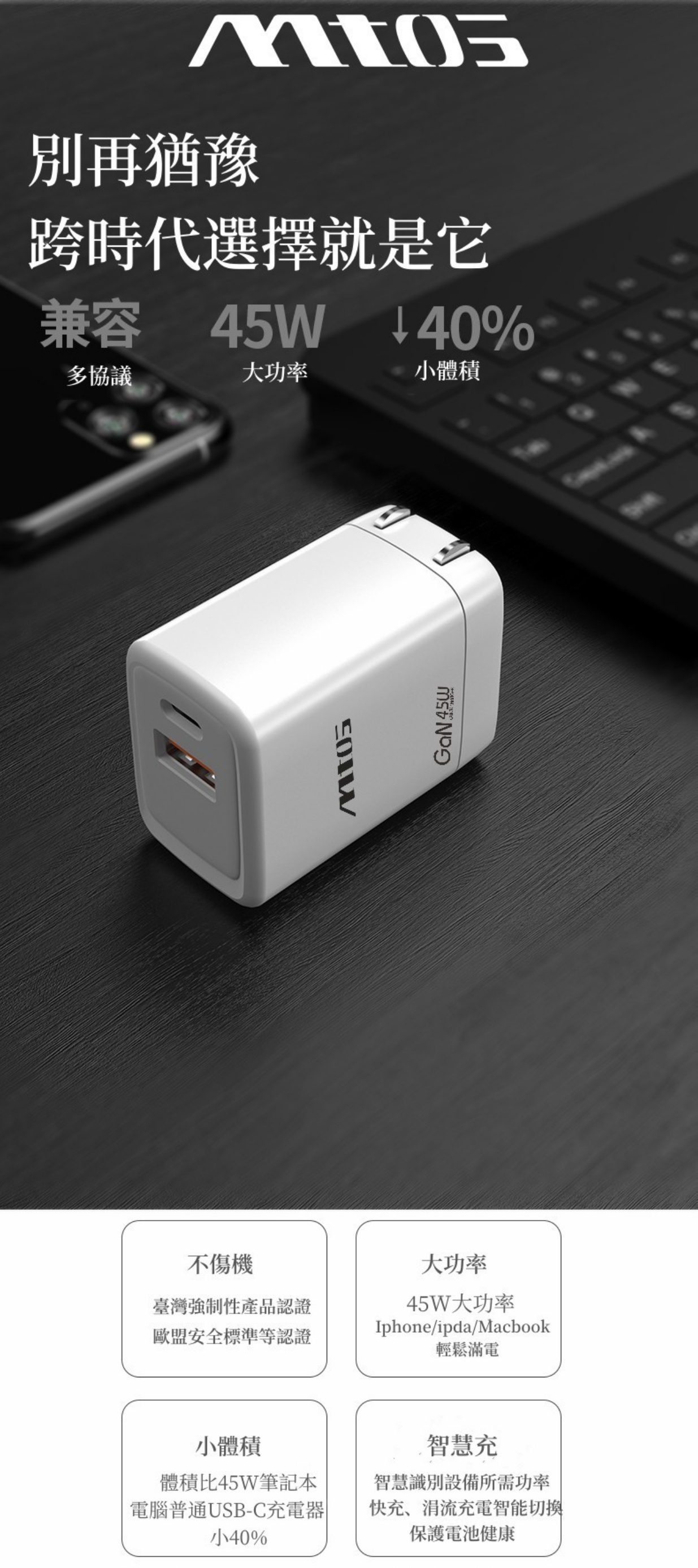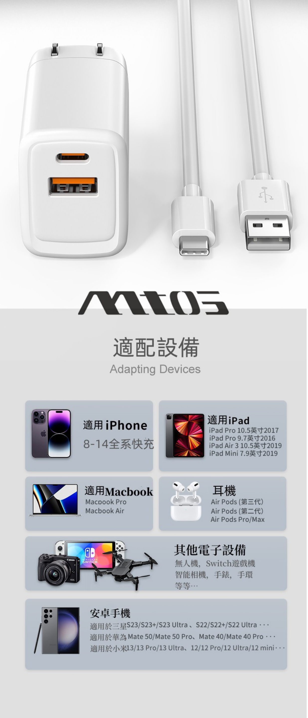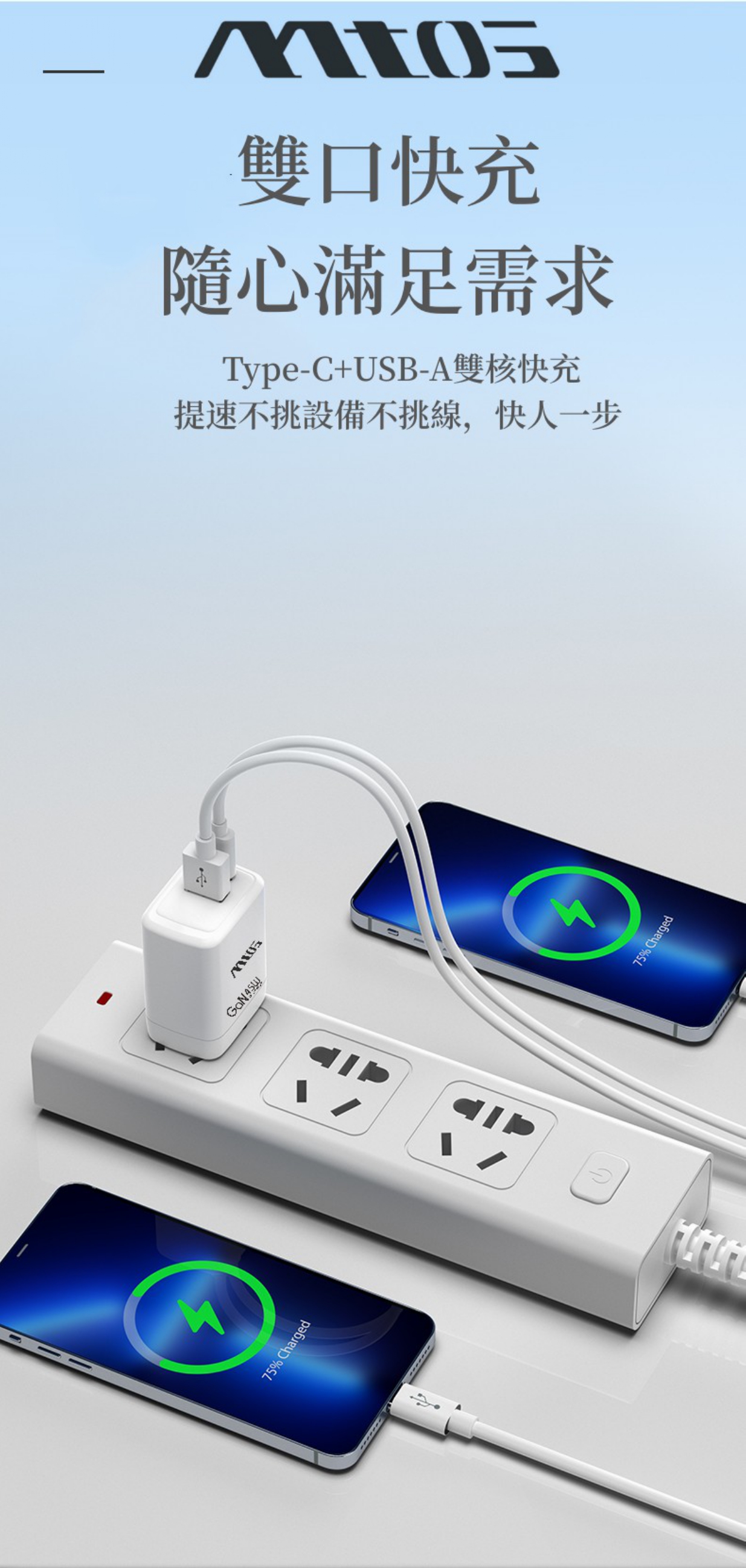 TYPE-C+USB-A:30W+15W Max