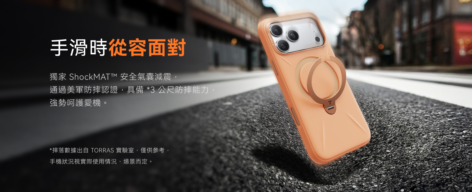 Torras Ostand Spin Silicone 磁吸四象限旋轉支架 防摔矽膠手機殼 iPhone 17 Pro 琥珀橘