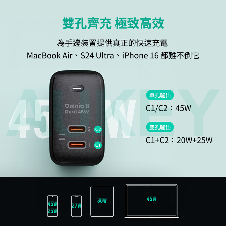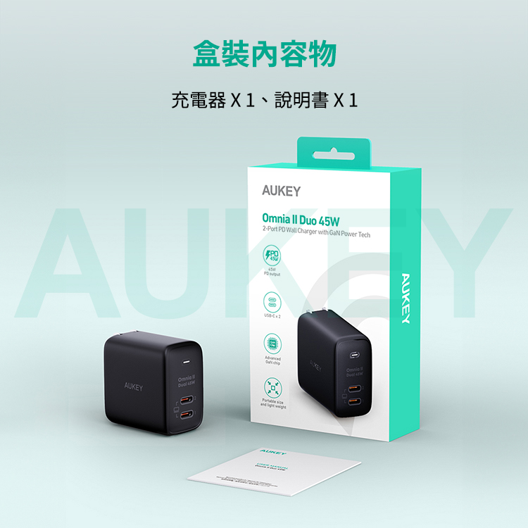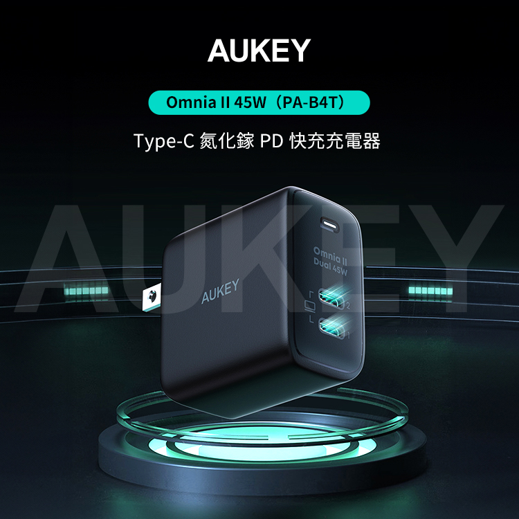 AUKEY Omnia II 45W 電源供應器AU-PA-B4T-BK 黑
