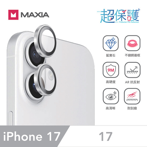 MAXIA iPhone 17 GIA藍寶石保護鏡貼(銀)-不鏽鋼框系列 MLI17-BS2-SL