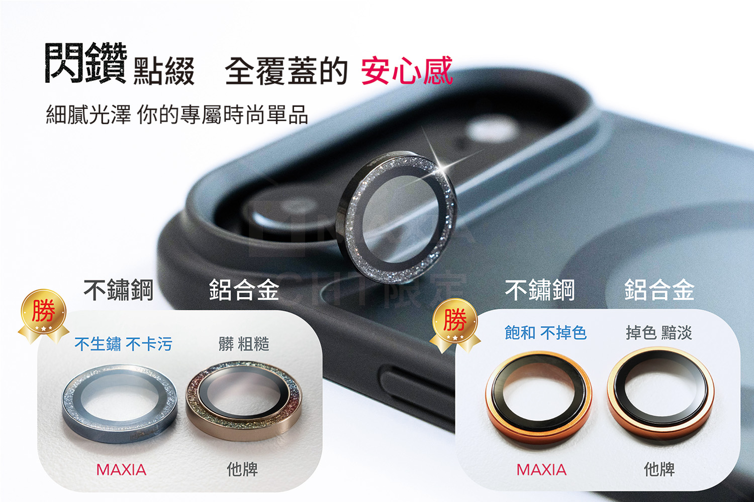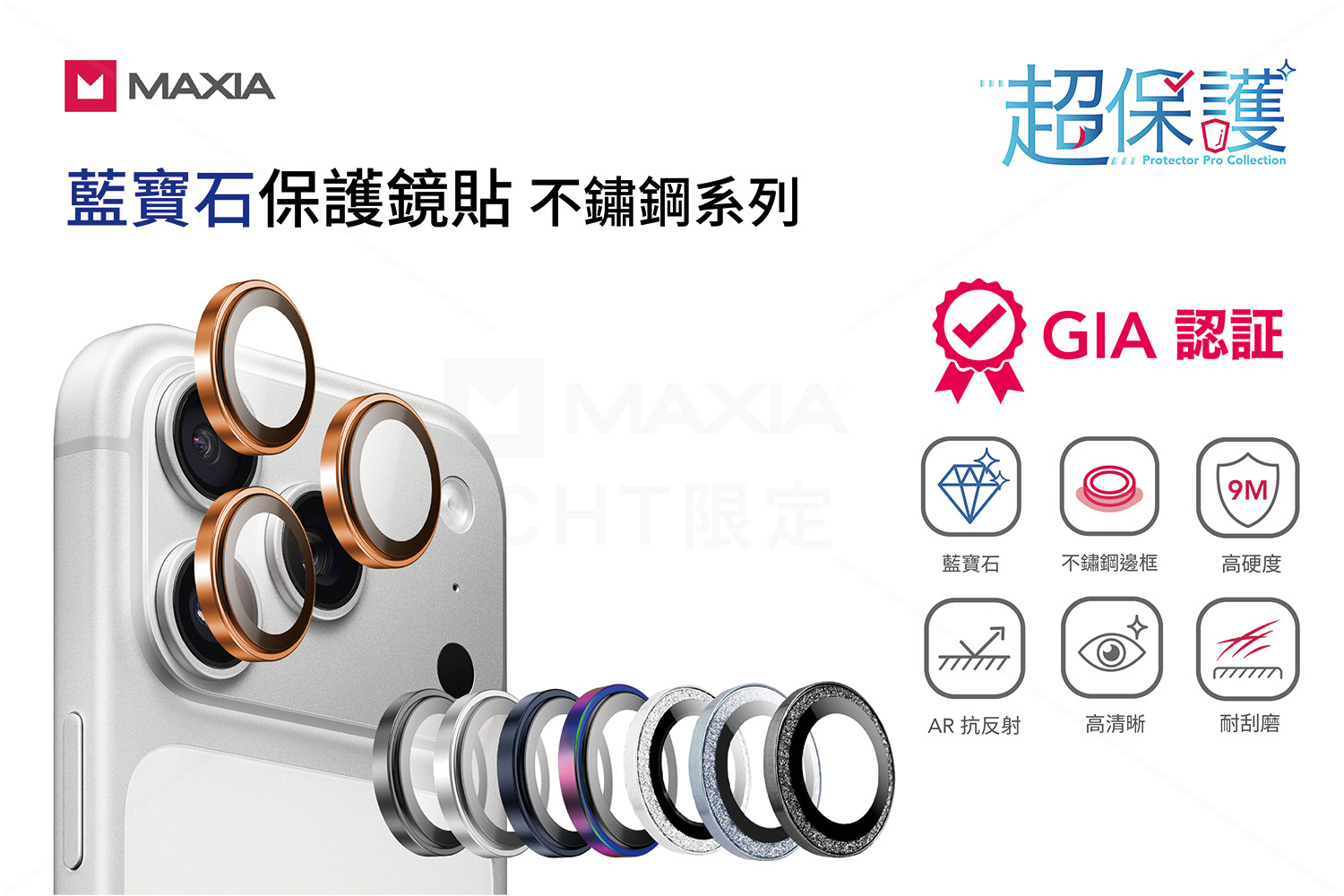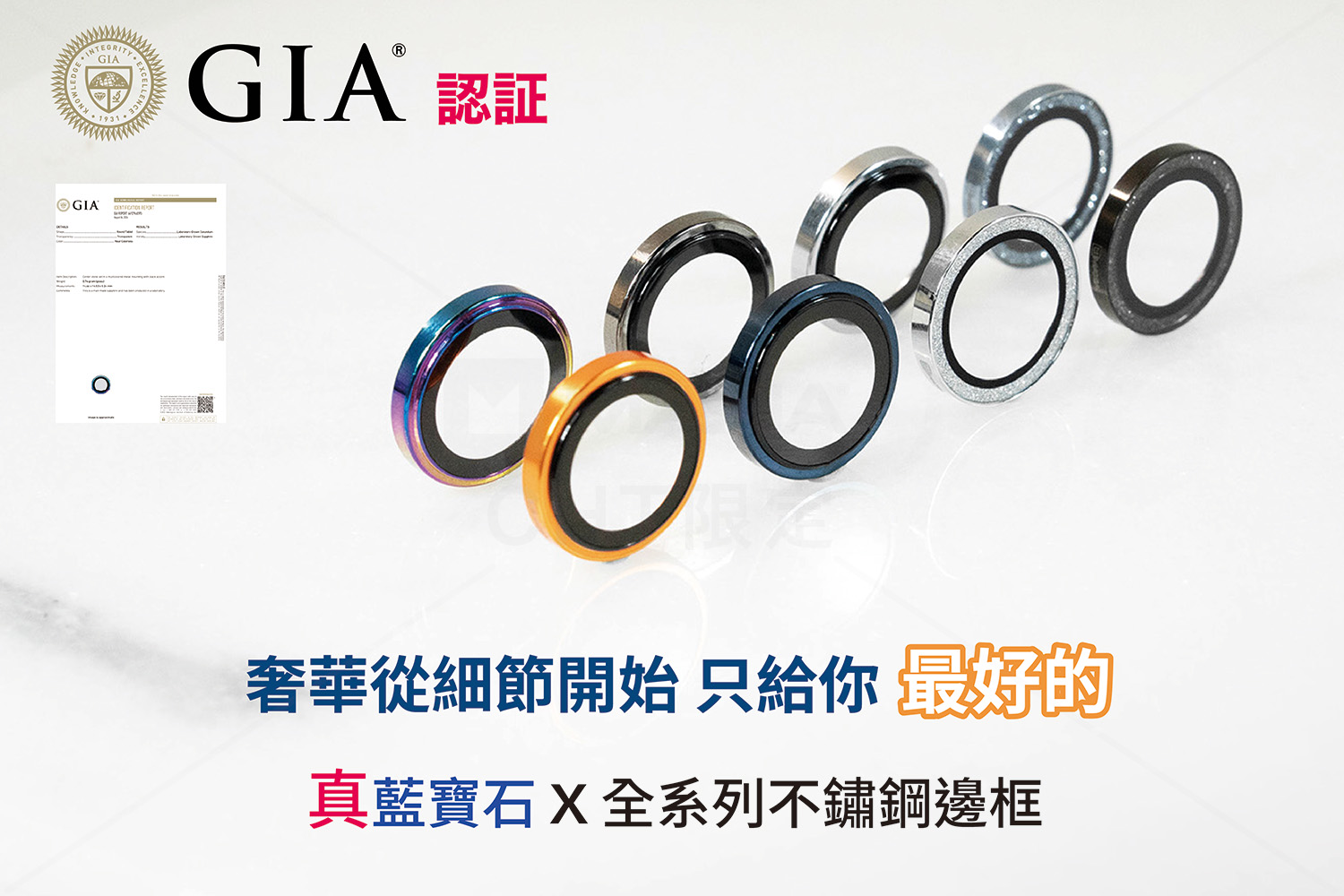 MAXIA iPhone Air GIA藍寶石保護鏡貼(閃鑽)-不鏽鋼框系列 MLI17-BS1-GWH