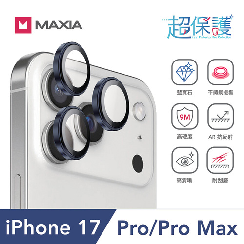 MAXIA iPhone 17 Pro&Pro Max GIA藍寶石保護鏡貼(深藍)-不鏽鋼框系列 MLI17-BS3-DB