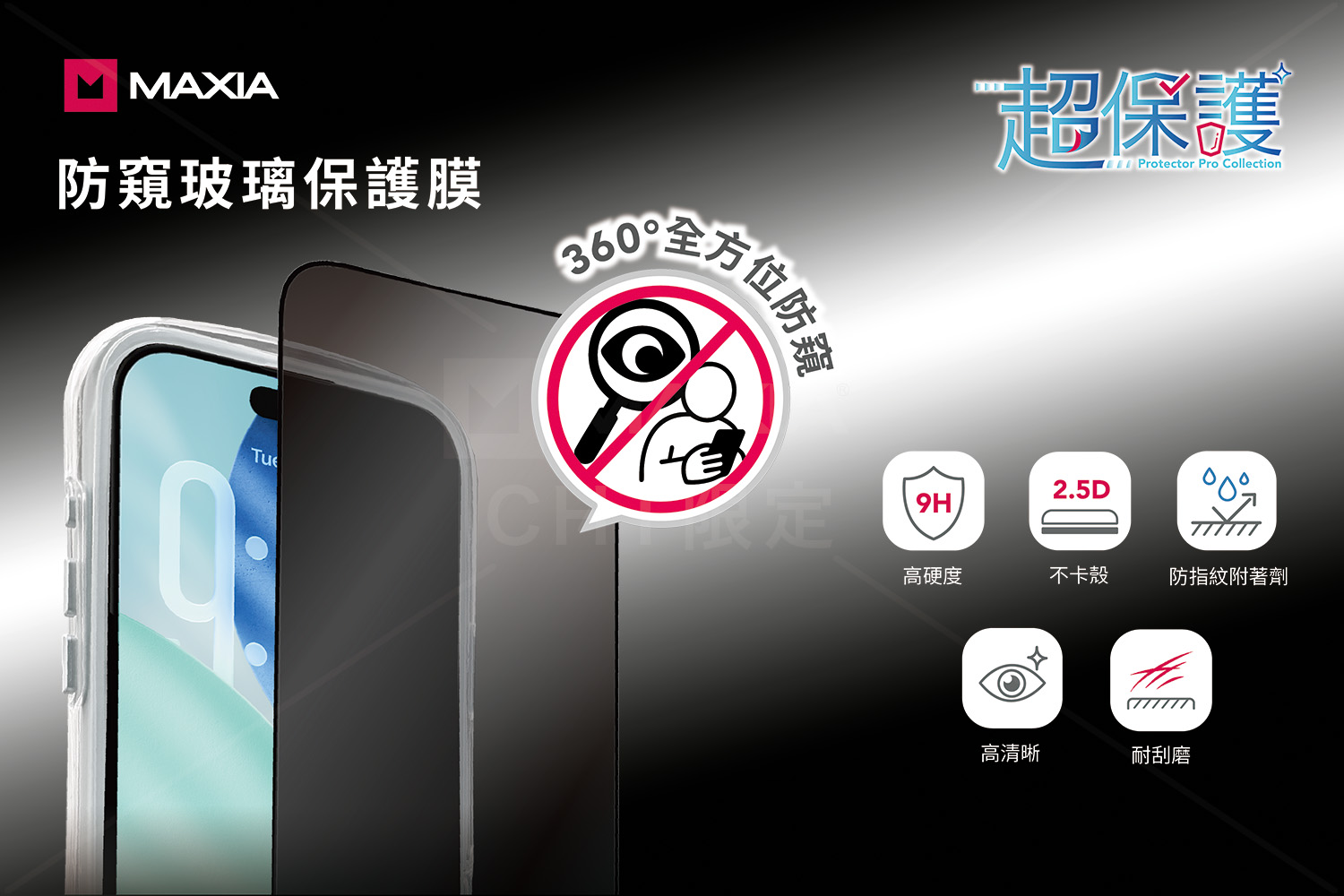 MAXIA iPhone 17&Pro 360°防窺玻璃保護膜6.3吋 MSI17&Pro-PF 6.3