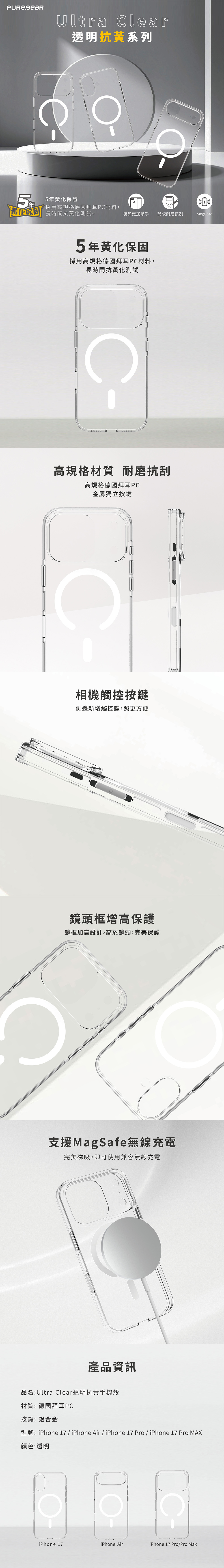 PureGear 普格爾 iPhone17 Air 抗黃磁吸保護殼