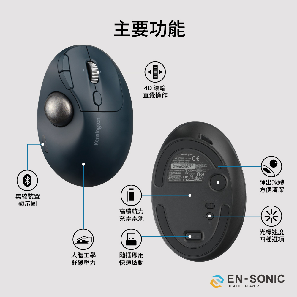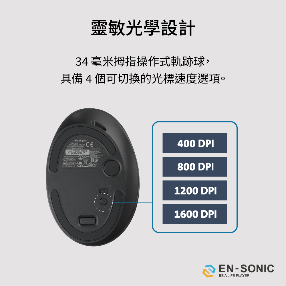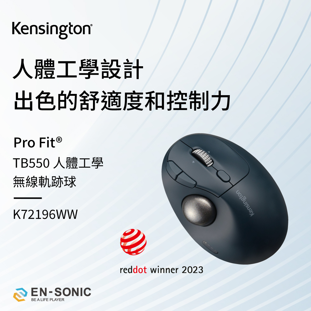 Kensington 紅點設計 TB550人體工學無線拇指軌跡球滑鼠 K72196