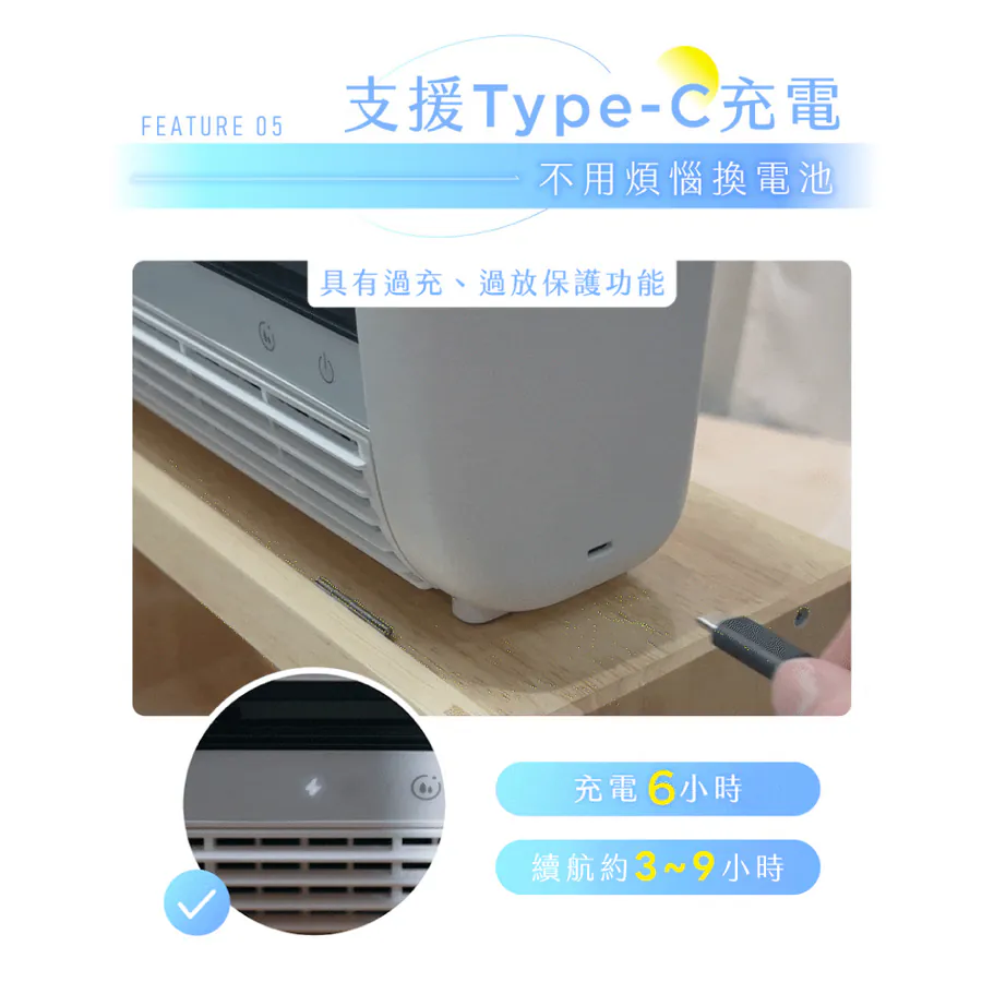 - 內建大容量鋰電池6000mAh,續航3~9小時