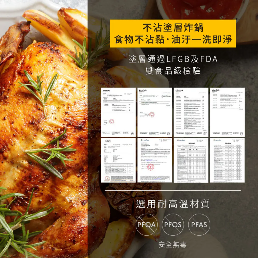 - 塗層通過LFGB及FDA雙食品級檢驗